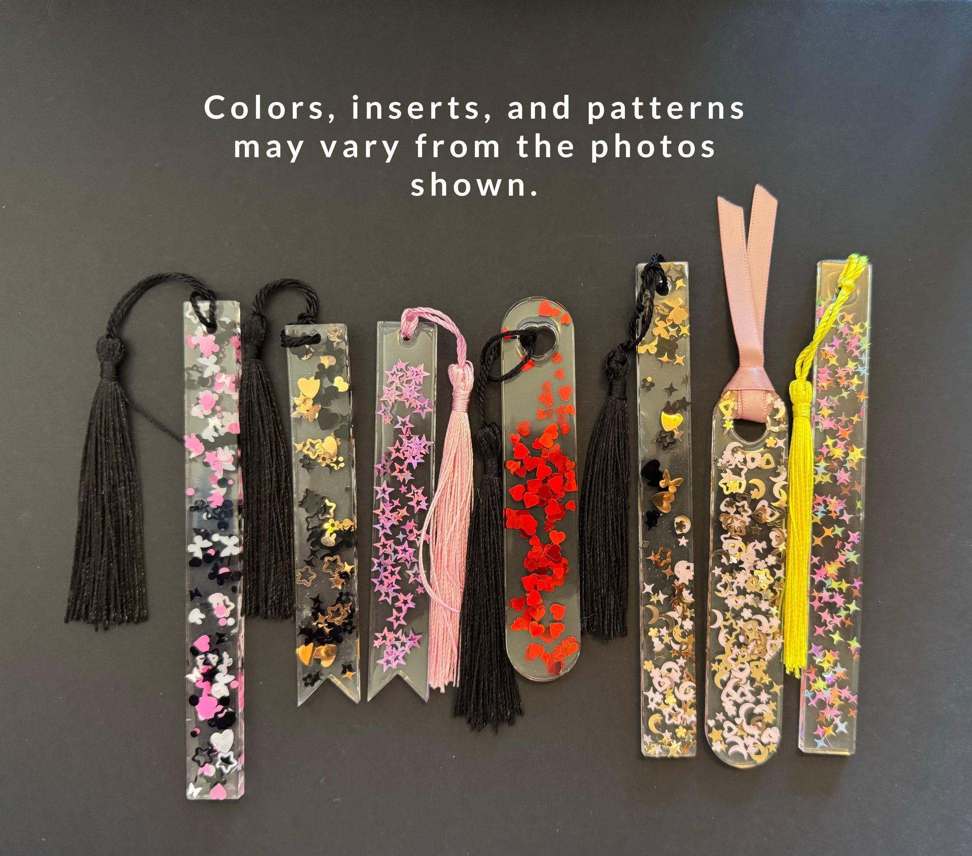 Each bookmark is handmade and unique. Colors, inserts, and patterns may vary slightly from the photos shown.