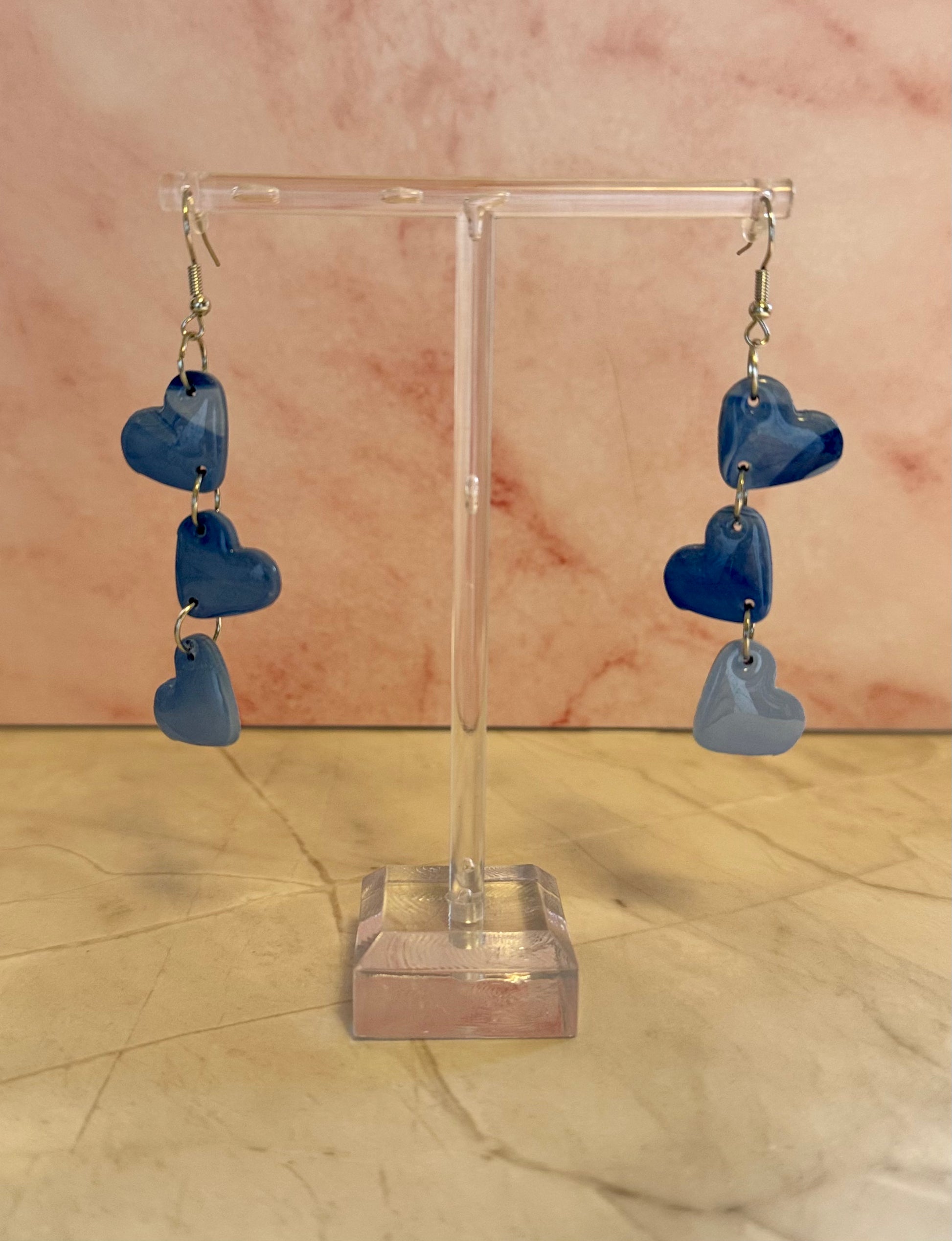 Fall in love with our Dreamy Heart Drops, handmade polymer clay earrings featuring cascading hearts in soft lilac and ocean blue tones. Lightweight and comfortable, these earrings sway beautifully and add a touch of romance to any outfit. Whether you prefer a pastel vibe or a bold pop of color, each pair is crafted with care for a unique, heartfelt finish. Perfect for everyday wear, date nights, or gifting to someone who loves playful, handmade jewelry.